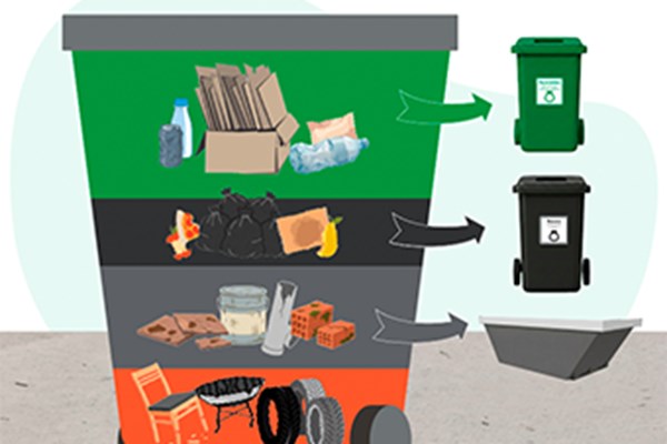 Su recolección se realizará los días lunes y jueves. No está permitido disponer reciclables ni en el contenedor negro de su domicilio, ni en el contendor gris del acceso de los Grandes Residuos.