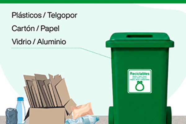 - Botellas de plástico: enjuagarlas, sacudirlas, compactarlas y cerrar con la tapa antes de disponerlas en la bolsa correspondiente.